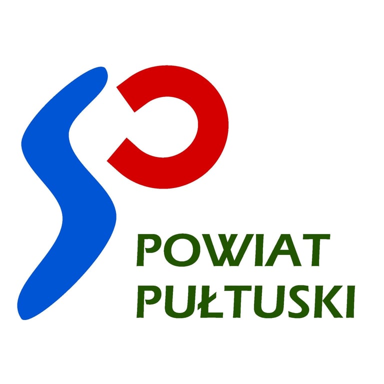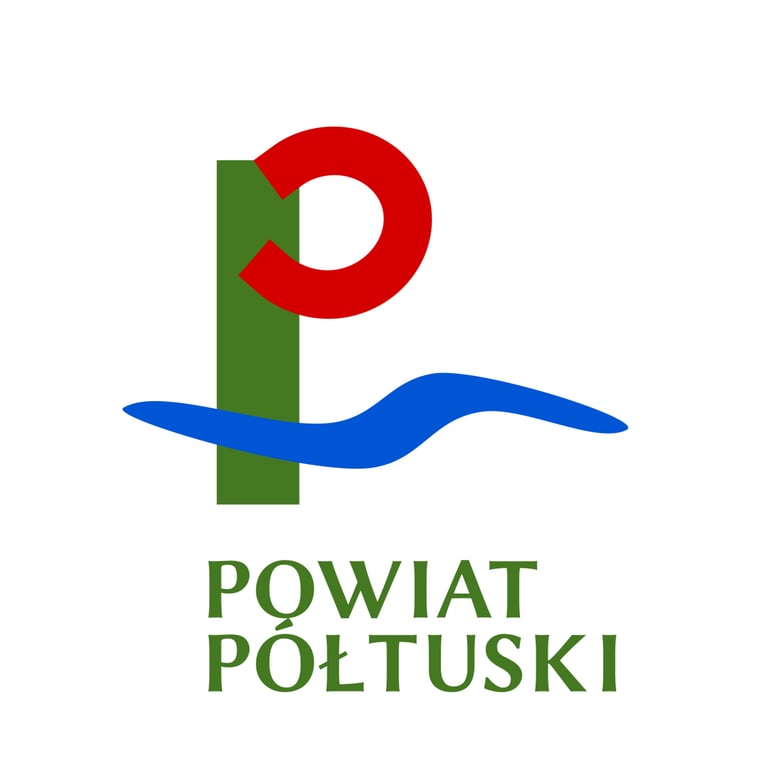 Nazwa „POWIAT PUŁTUSKI” (kolor zielony): Wskazuje na przyrodnicze bogactwo regionu.