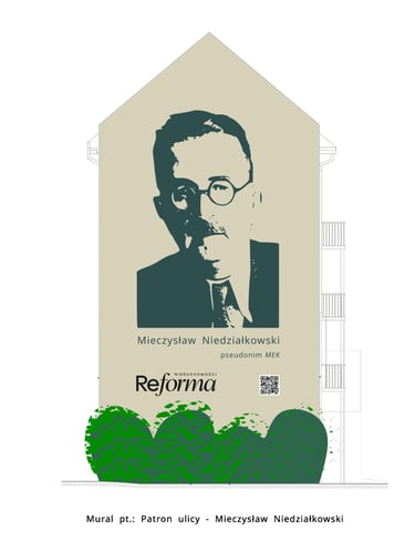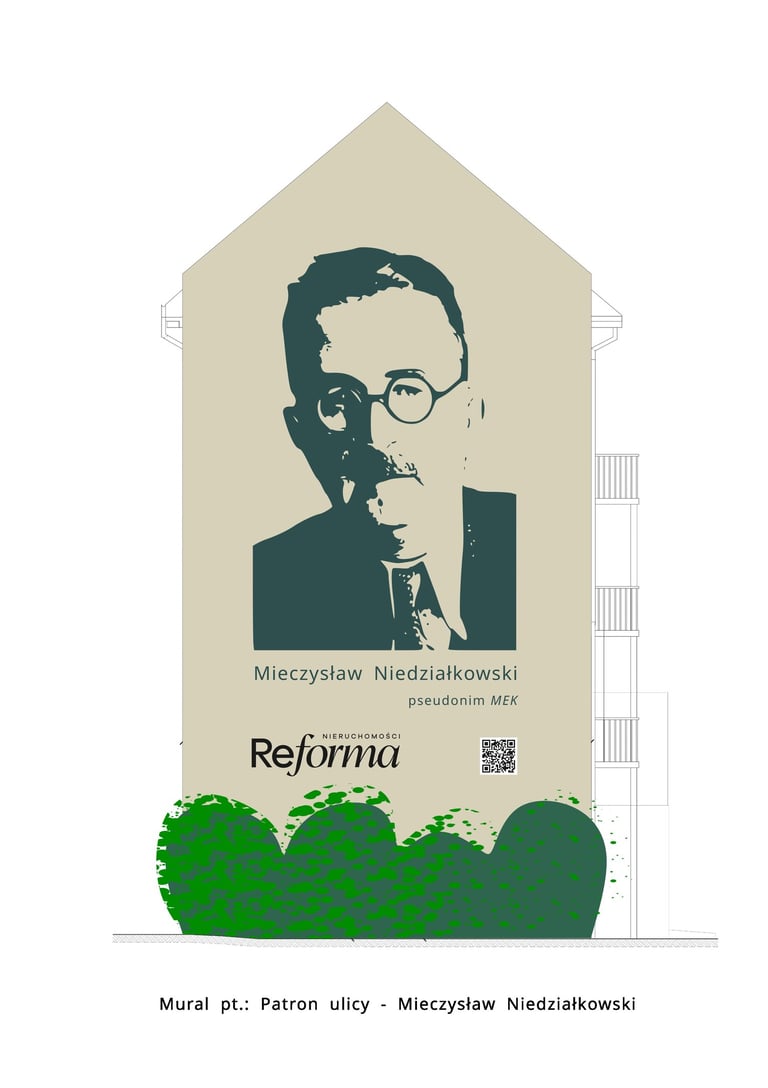 Inspiracją projektu murala jest postać Mieczysława Niedziałkowskiego, patrona ulicy, przy której znajduje się zrewitalizowana kamienica. Niedziałkowski dzięki swej działalności narodowej i społecznej odegrał istotną rolę w tworzeniu najnowszej historii Polski. Był politykiem, publicystą oraz współtwórcą współczesnej polskiej myśli politycznej. Jest postacią godną przypomnienia, gdyż Polska i jej mieszkańcy byli dla niego najważniejsi. Tym samym proponowany mural może pełnić oprócz roli dekoracyjnej funkcję edukacyjną. Zgodnie z zaleceniem konserwatorskim tło murala stanowi naturalny kolor ściany. Do stworzenia portretu wykorzystano archiwalne zdjęcie. Kolorystyka portretu nawiązuje do zieleni pobliskiego parku.